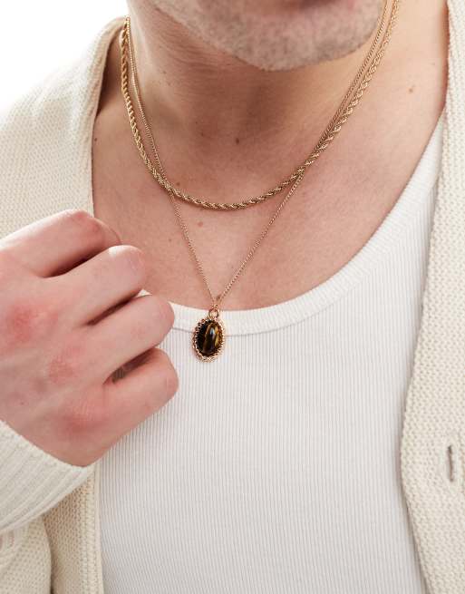 ASOS DESIGN - Collana a doppio filo dorata con ciondolo con pietra semipreziosa