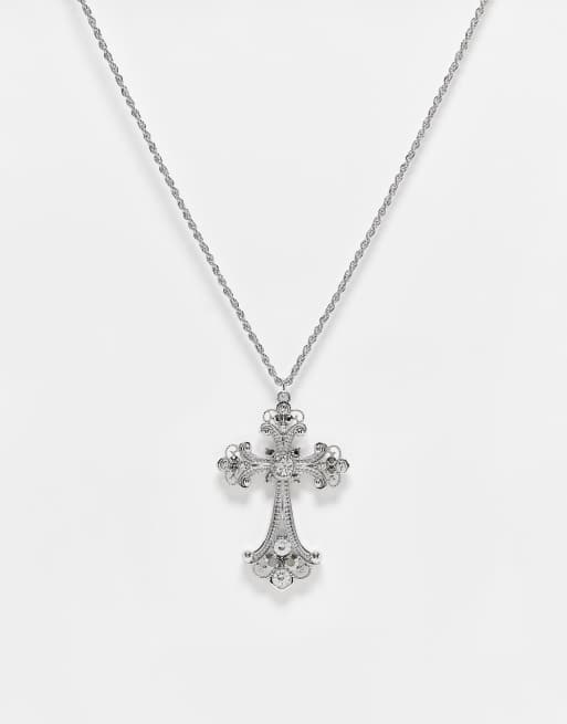 ASOS DESIGN - Collana argentata con pendente a croce grande