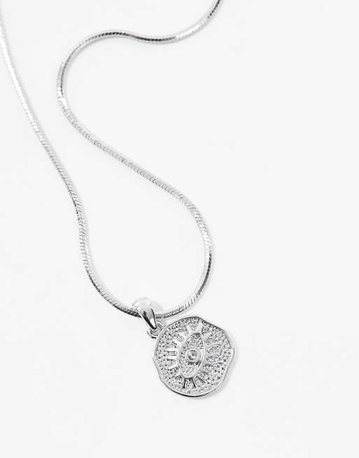 ASOS DESIGN - Collana argentata con pendente circolare con occhio