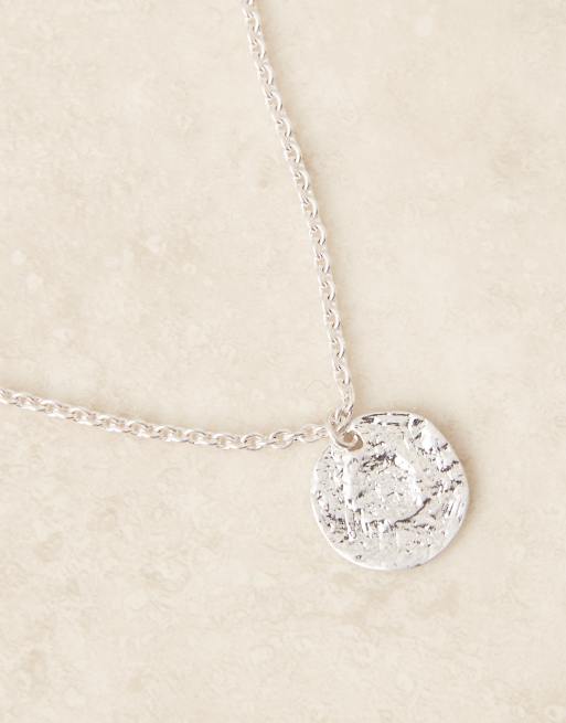 ASOS DESIGN - Collana argentata effetto invecchiato con pendente con moneta martellata