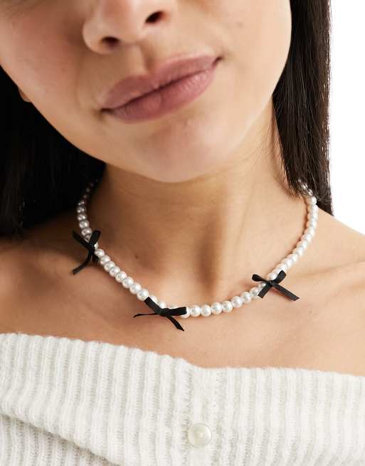 ASOS DESIGN - Collana con perle sintetiche e fiocchi neri