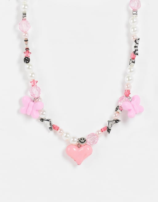 ASOS DESIGN - Collana con perle sintetiche e perline a farfalla e a cuore