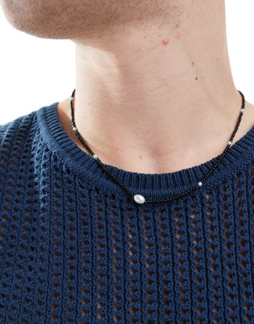 ASOS DESIGN- Collana da festival con perline grandi nera