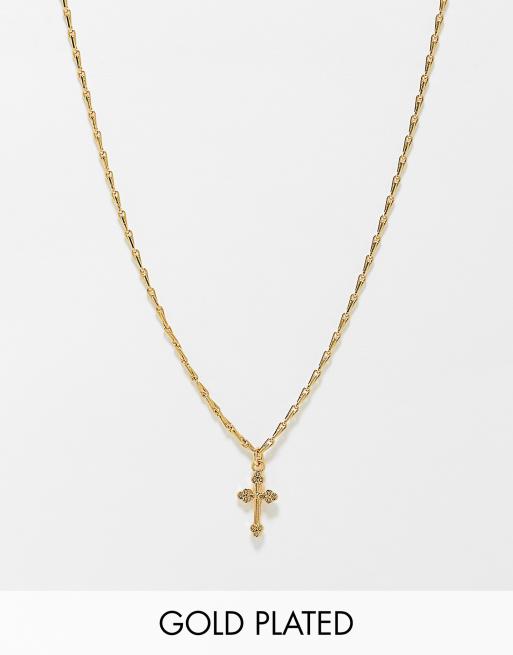 ASOS DESIGN - Collana di media lunghezza placcata oro 14 carati con ciondolo a forma di croce