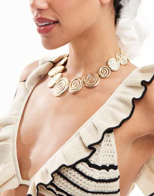ASOS DESIGN - Collana dorata con motivo a forma di conchiglie a spirale