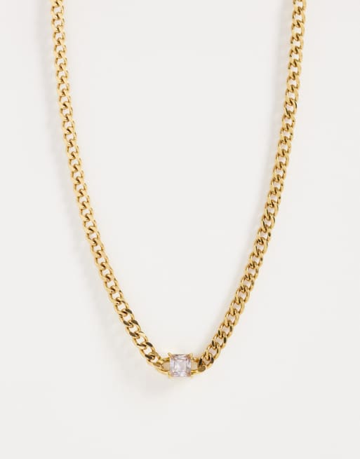ASOS DESIGN - Collana in acciaio inossidabile resistente all'acqua con catenina dorata con zirconia cubica