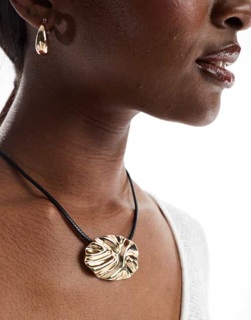 ASOS DESIGN - Collana in corda con ciondolo zigrinato dorato arrotondato