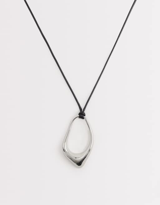 ASOS DESIGN - Collana lunga in corda con pendente astratto argentato