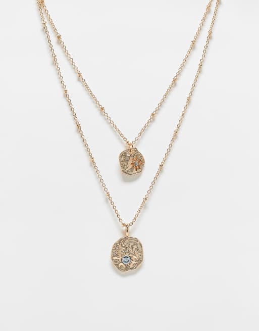 ASOS DESIGN - Collana multifilo a catenina dorata con ciondoli a forma di corpi celesti