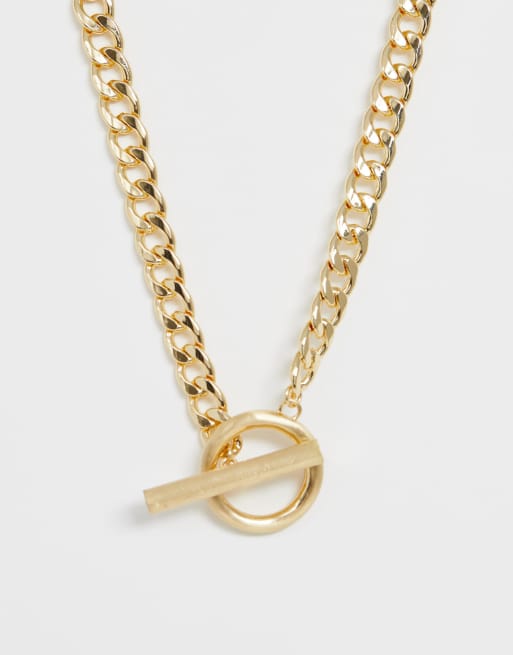 ASOS DESIGN - Collana oro con catena barbazzale, cerchio aperto spazzolato e chiusura a T-bar
