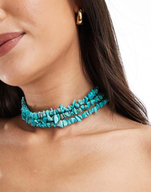 ASOS DESIGN - Collarino a triplo filo con pietre semipreziose turchesi