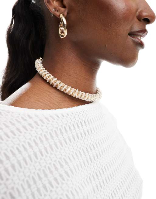 ASOS DESIGN - Collarino con perle sintetiche e perline oro