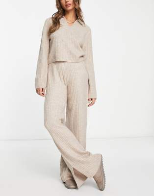 ASOS DESIGN - Completo premium da casa in maglia color pietra con maglione con colletto e pantaloni