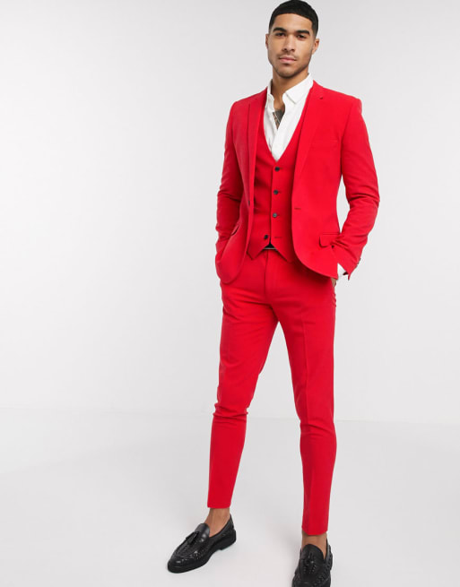 ASOS DESIGN - Completo super skinny elasticizzato in quattro direzioni rosso acceso