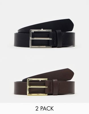 ASOS DESIGN - Confezione con cinture eleganti in pelle nera e marrone con fibbie argento e oro