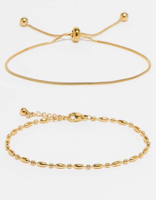 ASOS DESIGN - Confezione da 2 bracciali dell'amicizia in acciaio inossidabile resistente all'acqua a catenina sottile con confezione regalo