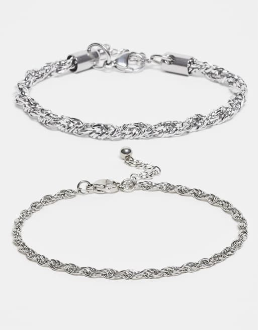 ASOS DESIGN - Confezione da 2 bracciali in catenina attorcigliata tonalità argento brunito in acciaio inossidabile resistente all'acqua
