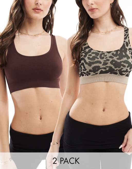 ASOS DESIGN - Confezione da 2 brassière cioccolato e con stampa leopardata