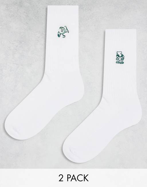 ASOS DESIGN - Confezione da 2 calze bianche con ricami a tema golf