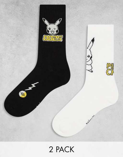 ASOS DESIGN - Confezione da 2 calze dei Pokémon nere e bianche con stampa di Pikachu