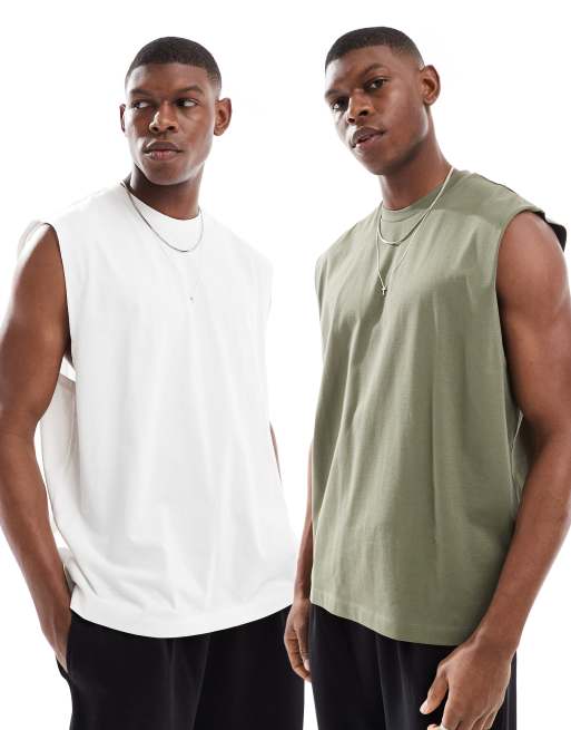 ASOS DESIGN - Confezione da 2 canotte basic oversize kaki e crema