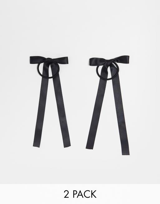 ASOS DESIGN - Confezione da 2 elastici per capelli con fiocco in raso neri