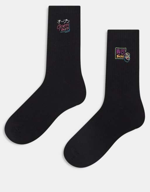 ASOS DESIGN - Confezione da 2 paia di calzini bianchi con stampa di insegna al neon