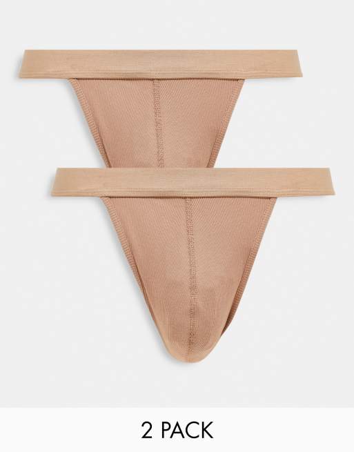 ASOS DESIGN - Confezione da 2 perizomi beige a coste