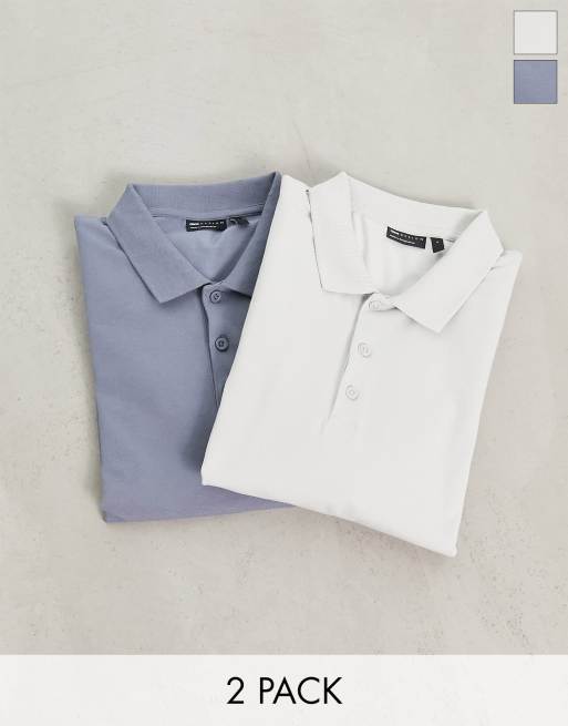 ASOS DESIGN - Confezione da 2 polo attillate bianca e blu