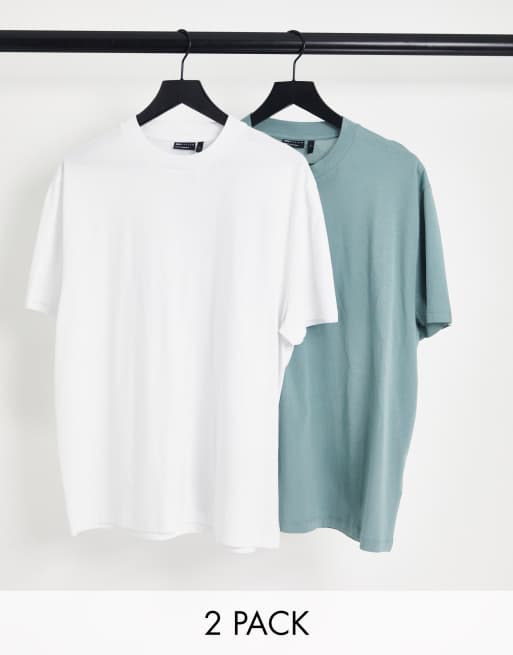 ASOS DESIGN - Confezione da 2 T-shirt comode girocollo bianca e blu