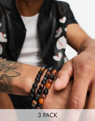 ASOS DESIGN - Confezione da 3 bracciali a perline marroni e nere con pietre semipreziose