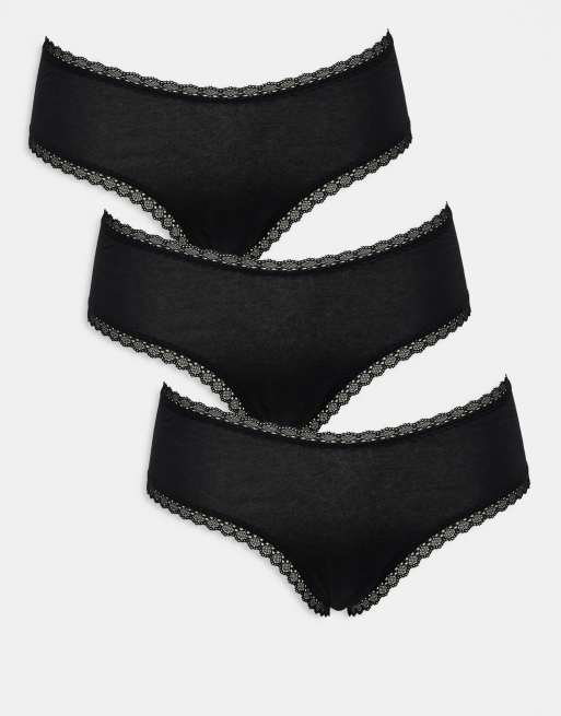 ASOS DESIGN - Confezione da 3 culotte a vita bassa nere con finiture in pizzo