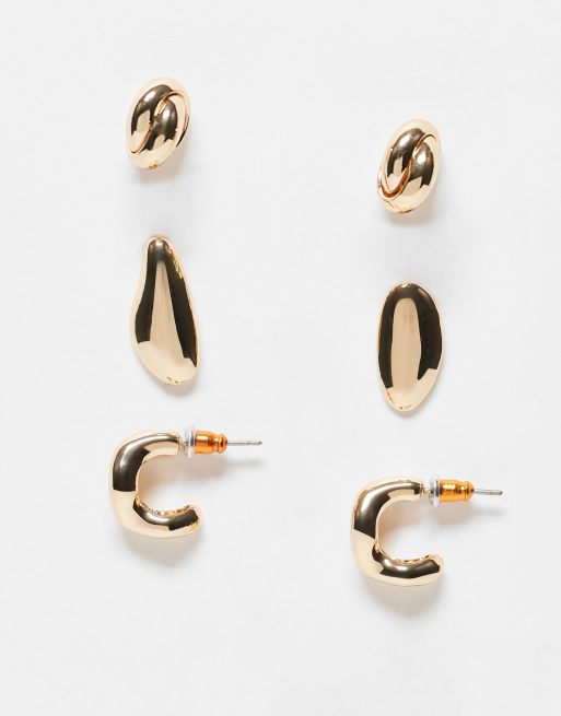 ASOS DESIGN - Confezione da 3 orecchini dorati con design misti effetto fuso