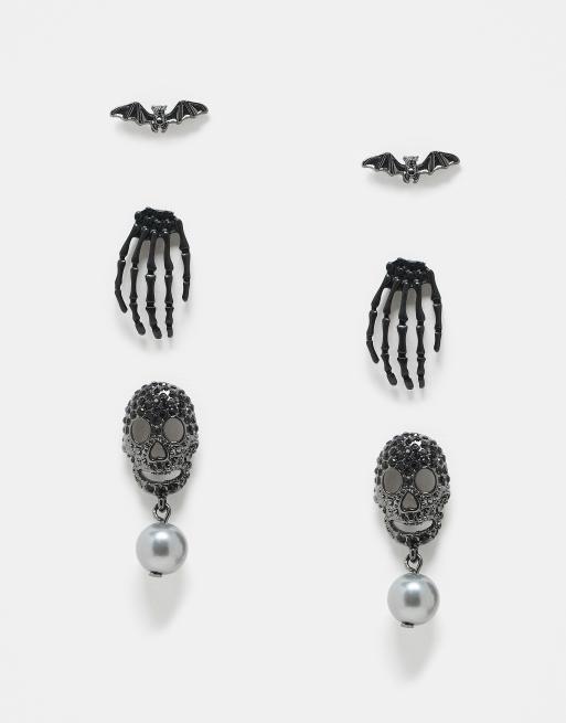 ASOS DESIGN - Confezione da 3 paia di orecchini a forma di scheletri e pipistrelli