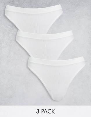 ASOS DESIGN - Confezione da 3 perizomi bianchi a coste senza cuciture