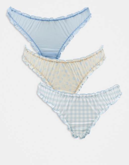 ASOS DESIGN - Confezione da 3 perizomi elasticizzati in rete gialli a fiori e blu a quadretti
