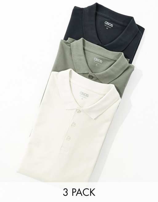 ASOS DESIGN - Confezione da 3 polo a maniche lunghe in piqué in diversi colori