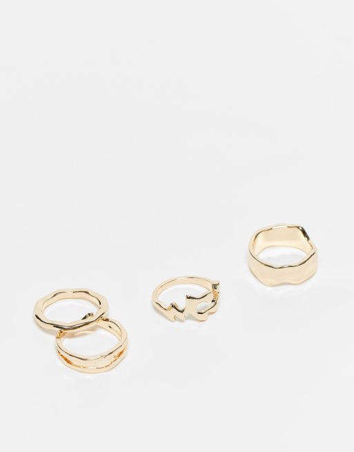 ASOS DESIGN - Confezione da 4 anelli dorati con design effetto fuso