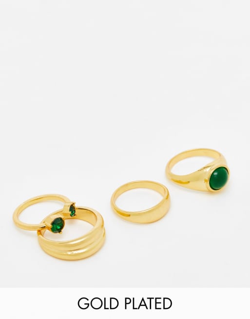 ASOS DESIGN - Confezione da 4 anelli dorati placcati oro 14k con pietre incastonate