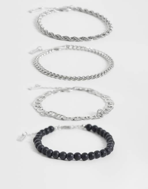 ASOS DESIGN - Confezione da 4 bracciali a catena a corda argentanti e con perline