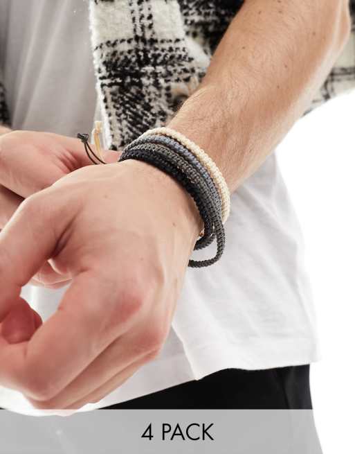 ASOS DESIGN - Confezione da 4 bracciali in corda bianchi e neri