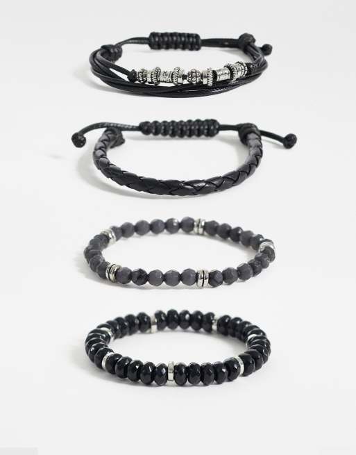 ASOS DESIGN - Confezione da 4 bracciali in tessuto e con perline sfaccettate neri