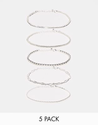 ASOS DESIGN - Confezione da 5 bracciali misti con catenina color argento