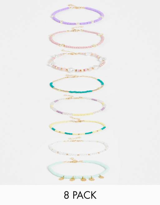 ASOS DESIGN - Confezione da 8 cavigliere con perline miste