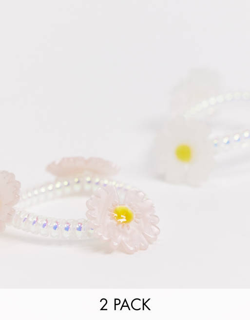 ASOS DESIGN - Confezione di 2 elastici per capelli con margherite