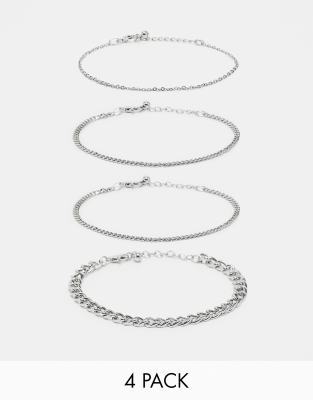 ASOS DESIGN - Confezione di 4 bracciali a catena color argento