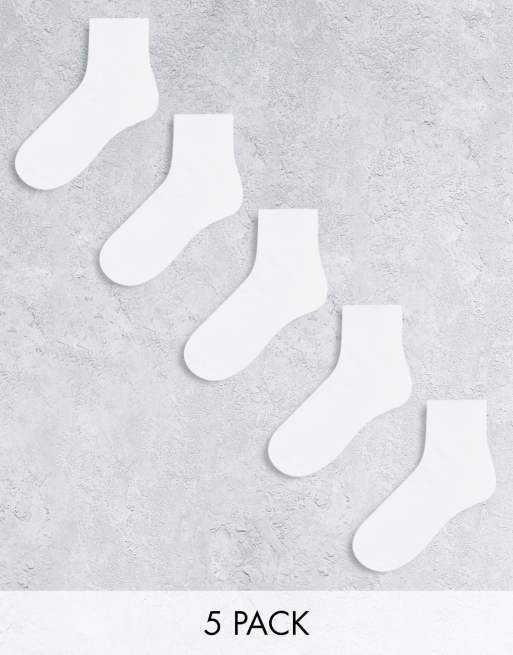 ASOS DESIGN - Confezione multipack da 5 paia di calzini alla caviglia bianchi