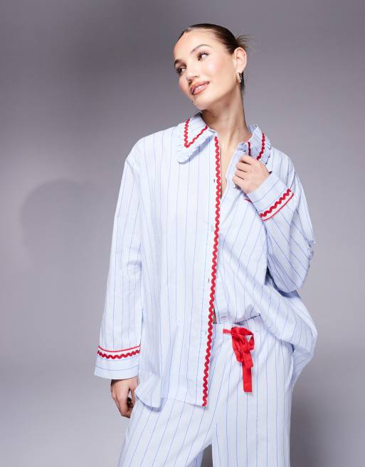 ASOS DESIGN - Confezione regalo con pigiama blu a righe con finiture a zig-zag