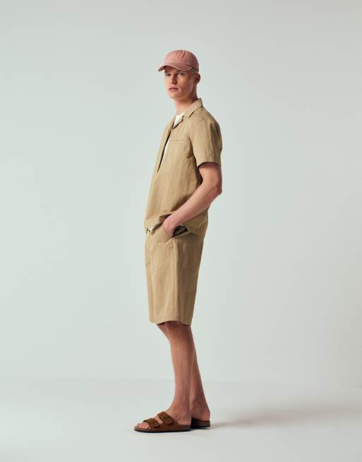ASOS DESIGN - Coordinato beige con camicia e pantaloncini