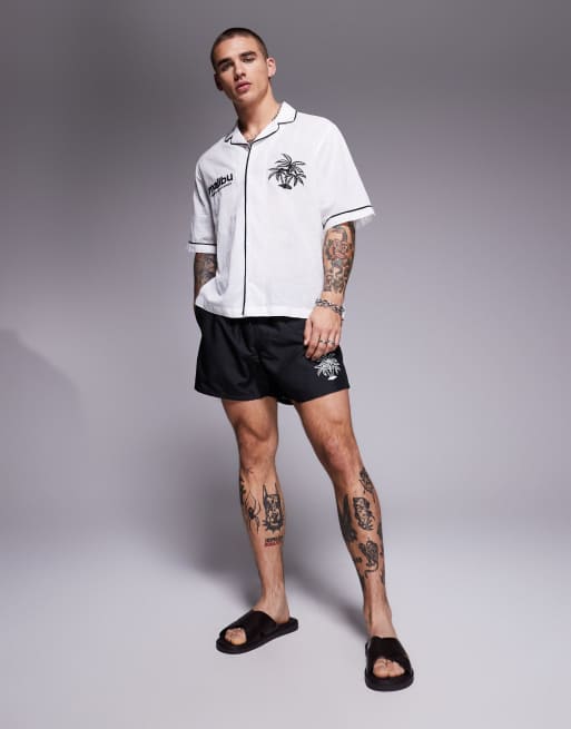 ASOS DESIGN - Coordinato bianco con ricamo di palme